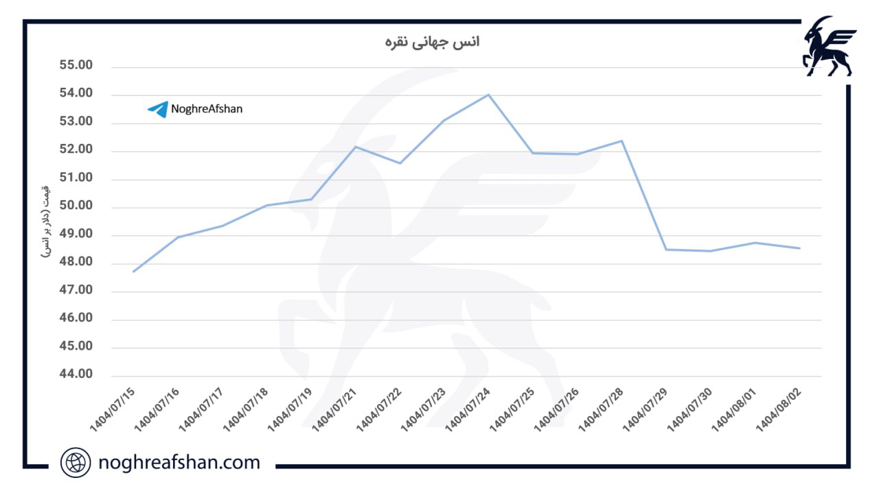 28 مهر الی 2 آبان 1404 (20 الی 24 اکتبر 2025) انس جهانی نقره هفته قبل را با قیمت 51.9 دلار آغاز کرد و پس از ثبت نوسانات گسترده در محدودهی 47.9 تا 52.6 دلار، در پایان معاملات روز جمعه با قیمت 48.66 دلار بسته شد. این رقم افتی حدود 6 درصد نسبت به هفتهی قبل داشته و در مجموع اصلاحی بیش از 13 درصد از سقف تاریخی 54.49 دلار را نشان می دهد. با وجود این افت کوتاهمدت، روند میانمدت و بلندمدت نقره همچنان صعودی ارزیابی میشود؛ چراکه بازدهی این فلز از سال 2020 تاکنون بیش از 367 درصد بوده و عملکردی تقریباً دو برابر طلا (202 درصد) داشته است.